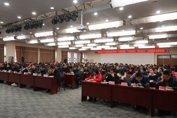 按照學(xué)院“不忘初心、牢記使命”主題教育實施方案要求和具體安排,2019年11月11日下午,學(xué)校黨委委員、我院黨委書記孫智憑在交通樓多功能廳為全體師生黨員講了一堂生動的專題黨課。自治區(qū)主題教育第八巡回指導(dǎo)組副組長倪培霖、成員郝博應(yīng)邀出席指導(dǎo)。學(xué)院領(lǐng)導(dǎo)、副處級以上干部、思政課教師、輔導(dǎo)員、班主任以及全體師生黨員、入黨積極分子現(xiàn)場聆聽。