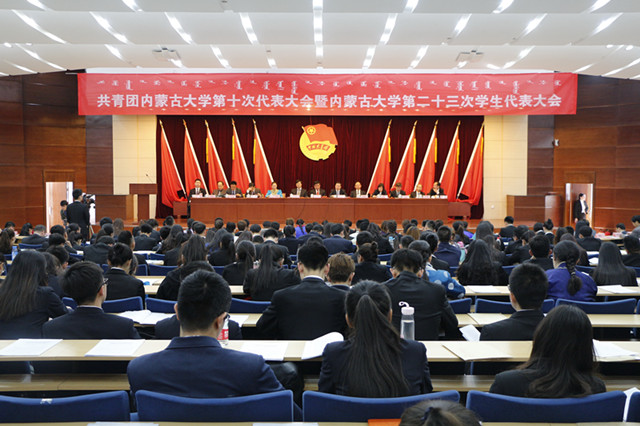 4月16日上午9時(shí),共青團(tuán)內(nèi)蒙古大學(xué)第十次代表大會(huì)暨內(nèi)蒙古大學(xué)第二十三次學(xué)生代表大會(huì)在內(nèi)蒙古大學(xué)學(xué)術(shù)會(huì)議中心九號(hào)會(huì)議室隆重開(kāi)幕。黨委副書(shū)記、校長(zhǎng)陳國(guó)慶,黨委副書(shū)記李延俊,副校長(zhǎng)張吉維,自治區(qū)團(tuán)委學(xué)校部部長(zhǎng)、自治區(qū)學(xué)聯(lián)秘書(shū)長(zhǎng)齊斯琴,自治區(qū)學(xué)聯(lián)主席、校學(xué)生會(huì)主席伊日桂出席了開(kāi)幕式。學(xué)校有關(guān)職能部門領(lǐng)導(dǎo)、各學(xué)院黨總支書(shū)記、部分老團(tuán)干、特邀代表以及團(tuán)代會(huì)代表、學(xué)代會(huì)代表共計(jì)450人參加了開(kāi)幕式。