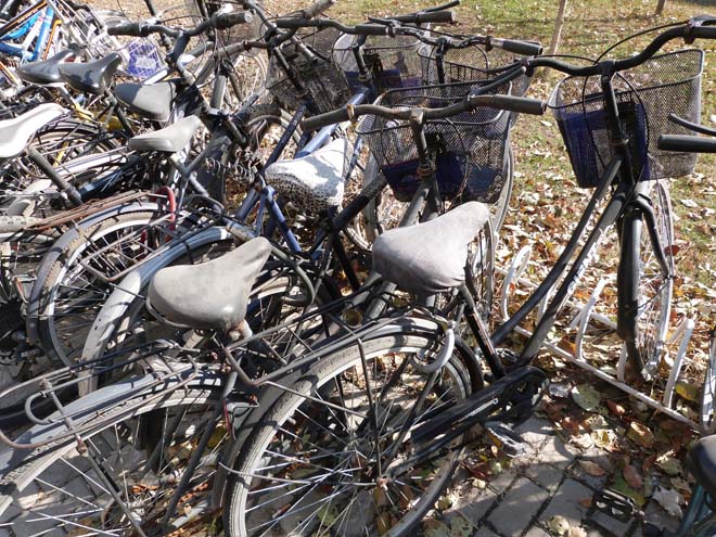 三等獎 作品名稱:車應長騎,不宜久置 座屏簡介:這是在樓下的停車處拍攝的圖片,可以通過圖片看出,這是一種浪費,時間長了自然而然就有問題了,讓我們提高自行車的利用率。 路橋50班 劉明遠 |
