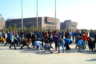2014年11月4日中午,溫暖的陽光照射在內(nèi)蒙古大學(xué)南區(qū)廣場,交通學(xué)院學(xué)工處(團(tuán)委)學(xué)生聯(lián)合會的心理健康教育部正在組織學(xué)生參與一場愉悅身心的團(tuán)體游戲項(xiàng)目比拼?!凹佑?!”“加油!”吶喊助威聲不絕于耳。