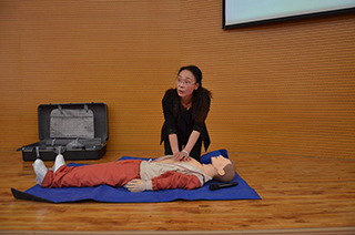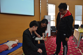 內蒙古大學藝術學院醫(yī)務室主任塔娜教授現(xiàn)場講意外傷害如何包心肺復蘇術的操作流程 | |