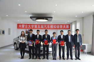 內(nèi)蒙古大學(xué)“中升豐田杯”汽車模擬銷售大賽創(chuàng)立于2012年,由呼和浩特中升豐田汽車服務(wù)營(yíng)銷有限公司冠名贊助,每年一屆,已經(jīng)成功舉辦了五屆。大賽由交 通學(xué)院學(xué)工處(團(tuán)委)主辦,汽車工程系承辦,分初賽、復(fù)賽、決賽三個(gè)環(huán)節(jié),每屆歷時(shí)均超過(guò)一個(gè)月。比賽成功吸引了各學(xué)院大量愛(ài)好營(yíng)銷的學(xué)生參加,通過(guò)大 賽,既為同學(xué)們普及了汽車相關(guān)知識(shí),又提升了選手們的汽車銷售經(jīng)驗(yàn),豐富了校園文化生活。