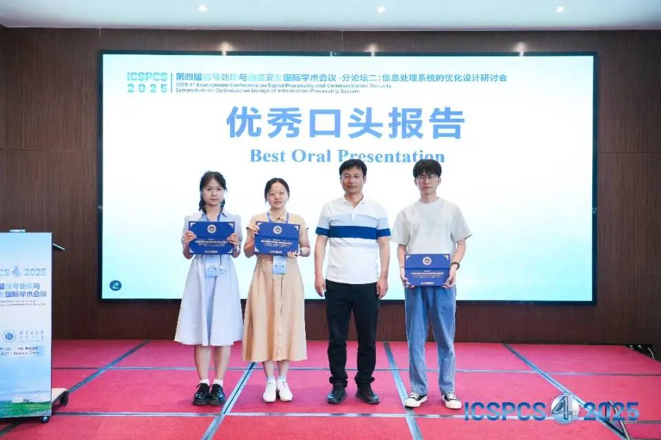 組委會(huì)對(duì)現(xiàn)場(chǎng)口頭報(bào)告表現(xiàn)優(yōu)異的學(xué)者頒發(fā)【優(yōu)秀口頭報(bào)告獎(jiǎng)】,通過表彰優(yōu)秀的科研人才與科研成果,希望能夠激勵(lì)更多學(xué)者在領(lǐng)域前沿不斷探索。至此,第四屆信號(hào)處理與通信安全國(guó)際學(xué)術(shù)會(huì)議(ICSPCS 2025)在專家學(xué)者熱烈討論的氛圍下圓滿落幕!